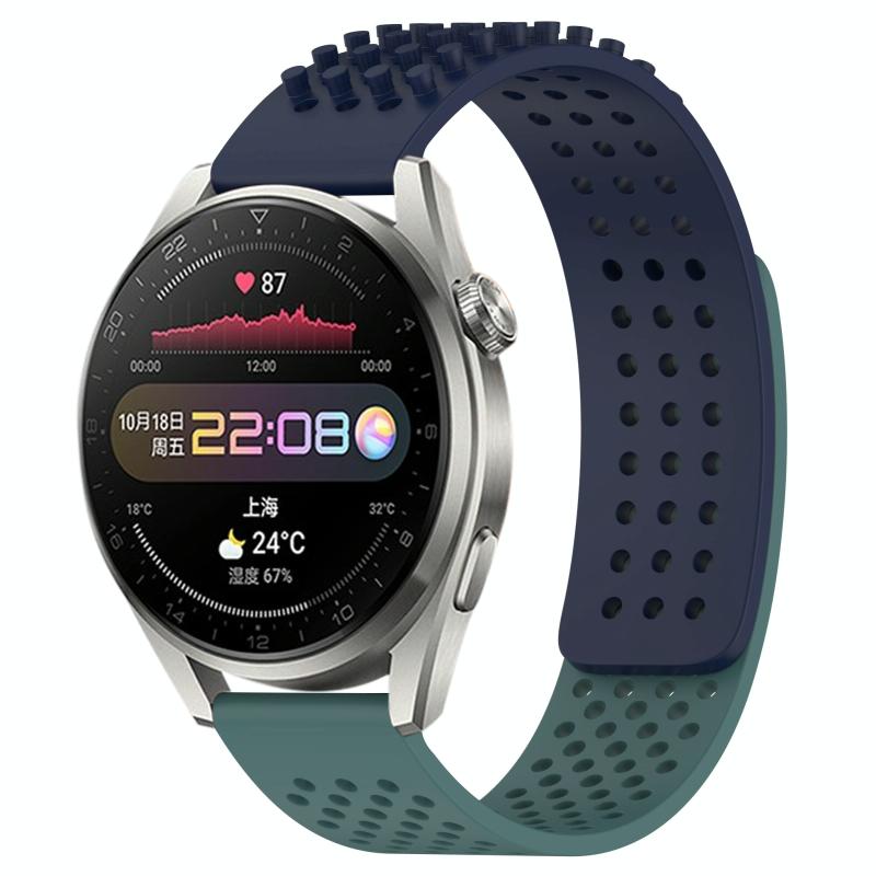 For Huawei Watch 3 Pro 22mm Holes Breathable 3D Dots Silicone Watch Band(Midnight Blue+Olive Green)