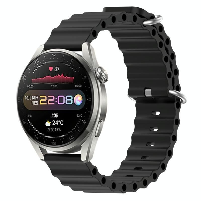 Για Huawei Watch 3 Pro 22mm Ocean Style σιλικόνης στερεό χρώμα ρολόι μπάντα ρολογιού (μαύρο)