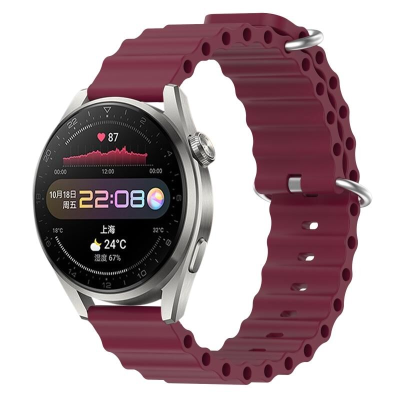 Για το Huawei Watch 3 Pro 22mm Ocean Style σιλικόνης στερεό χρώμα ρολόι μπάντα ρολογιού (κόκκινο κρασί)
