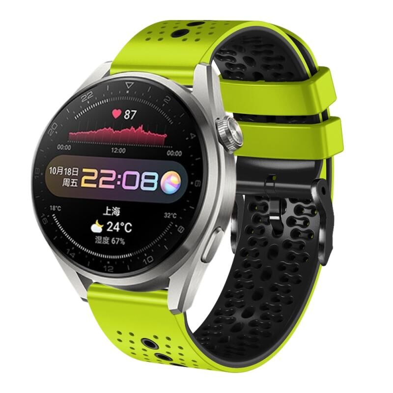 Για το Huawei Watch 3 Pro 22mm διάτρητη ζώνη ρολογιού σιλικόνης δύο χρωμάτων (Lime + Μαύρο)