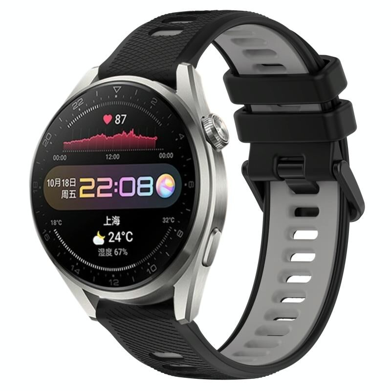 Για το Huawei Watch 3 Pro 22mm Αθλητική ζώνη ρολογιού σιλικόνης δύο χρωμάτων (μαύρο + γκρι)