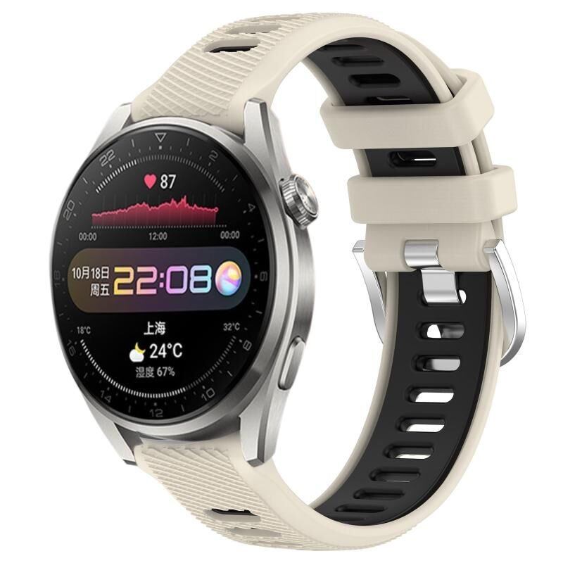 Για το Huawei Watch 3 Pro 22mm Αθλητική ζώνη ρολογιού σιλικόνης με ατσάλινη πόρπη δύο χρωμάτων (Starlight + Μαύρο)