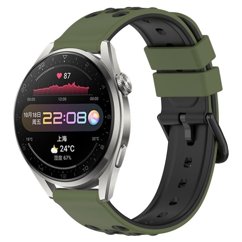 Για το Huawei Watch 3 Pro 22mm Δύο χρωμάτων πορώδες λουράκι σιλικόνης (Πράσινο του στρατού + Μαύρο)