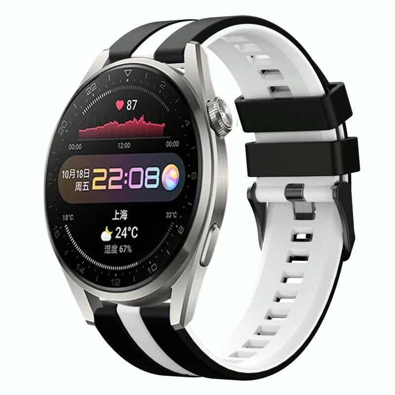 Για το Huawei Watch 3 Pro 22mm δύο χρωμάτων αθλητική ζώνη ρολογιού σιλικόνης (Μαύρο + Λευκό)