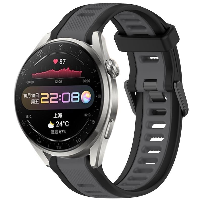 Για το Huawei Watch 3 Pro 22mm Δύο Χρώμα υφή σιλικόνης ρολόι μπάντα ρολογιού (γκρι + μαύρο)