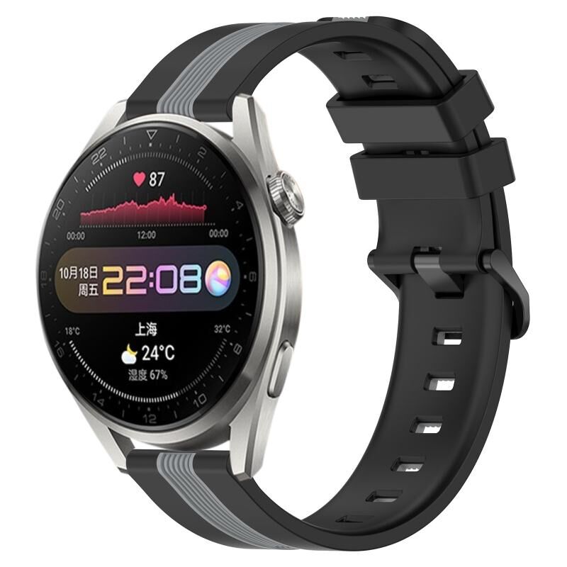 Για Huawei Watch 3 Pro 22mm Κάθετη ζώνη ρολογιού σιλικόνης δύο χρωμάτων (μαύρο+γκρι)