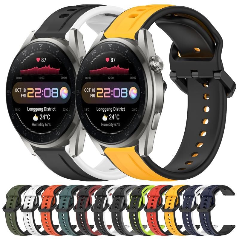 Για το Huawei Watch 3 Pro Νέο 22mm κυρτό βρόχο σιλικόνης δύο χρωμάτων (μαύρο + γκρι)