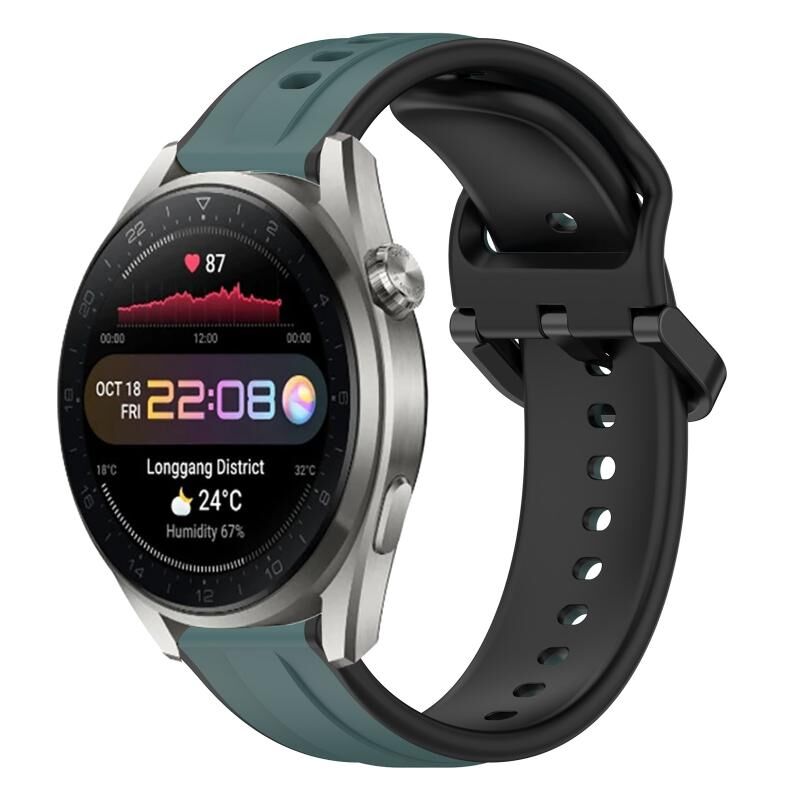 Για το Huawei Watch 3 Pro Νέο 22mm κυρτό βρόχο σιλικόνης δύο χρωμάτων (πράσινο + μαύρο)