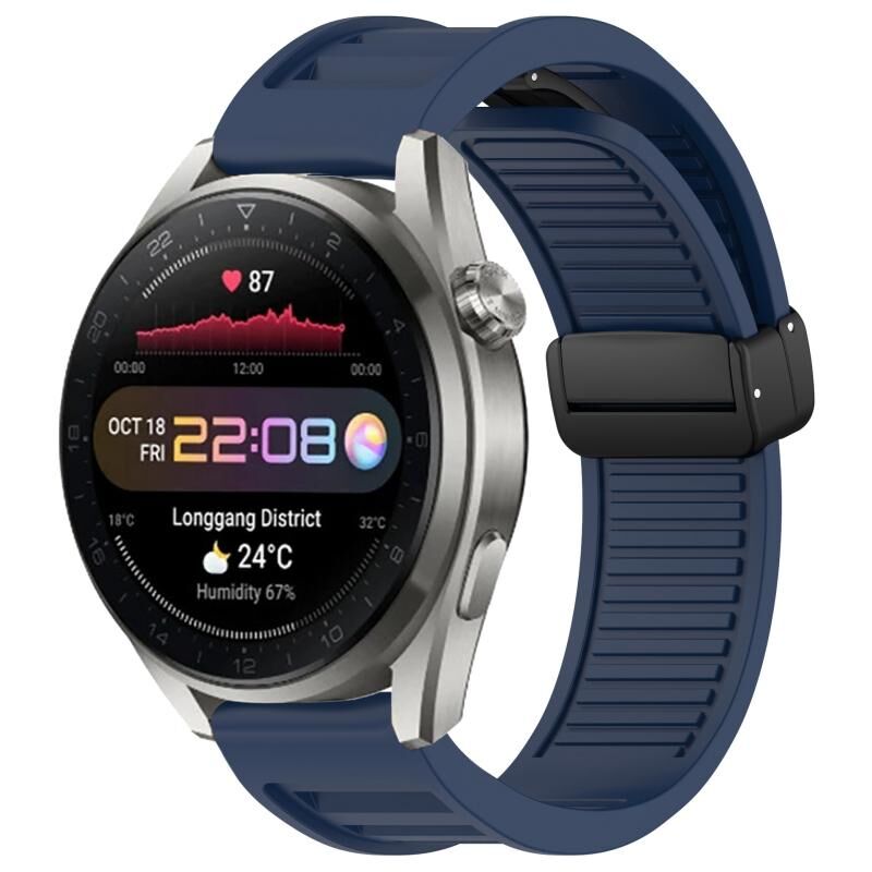 Για το Huawei Watch 3 Pro Νέο 22mm Πτυσσόμενο μαγνητικό λουράκι σιλικόνης για ρολόι (Μπλε μεσάνυχτα)