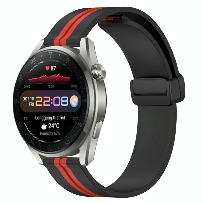 Για το Huawei Watch 3 Pro Νέο 22mm Πτυσσόμενο μαγνητικό κούμπωμα ζώνη ρολογιού σιλικόνης (μαύρο + κόκκινο)