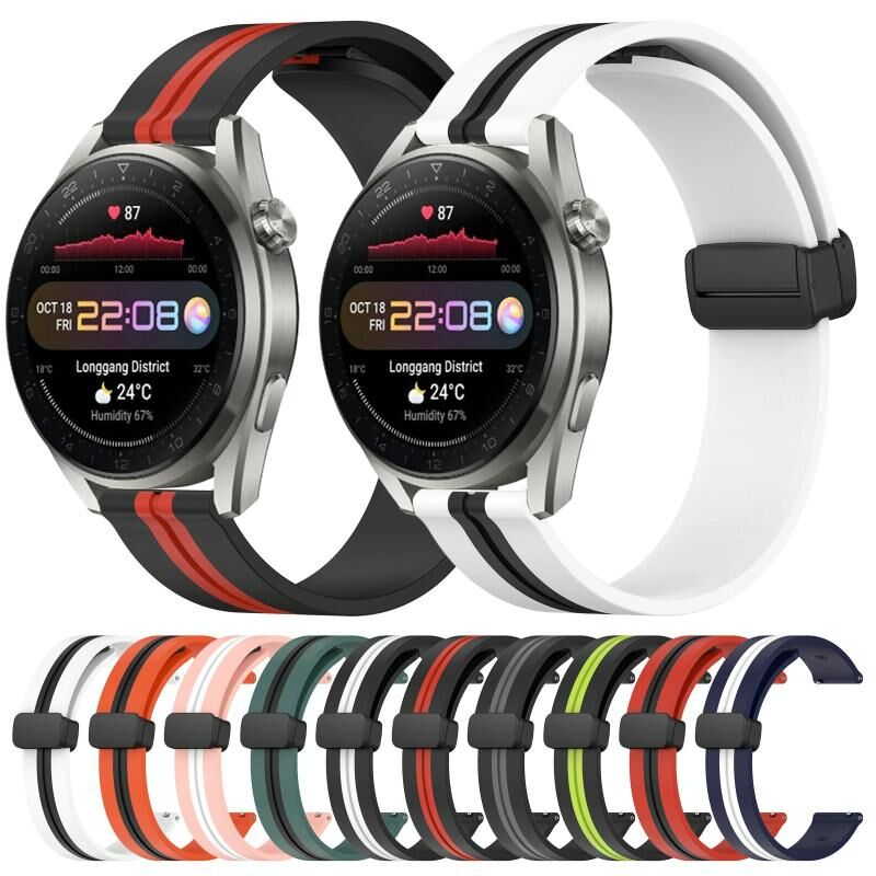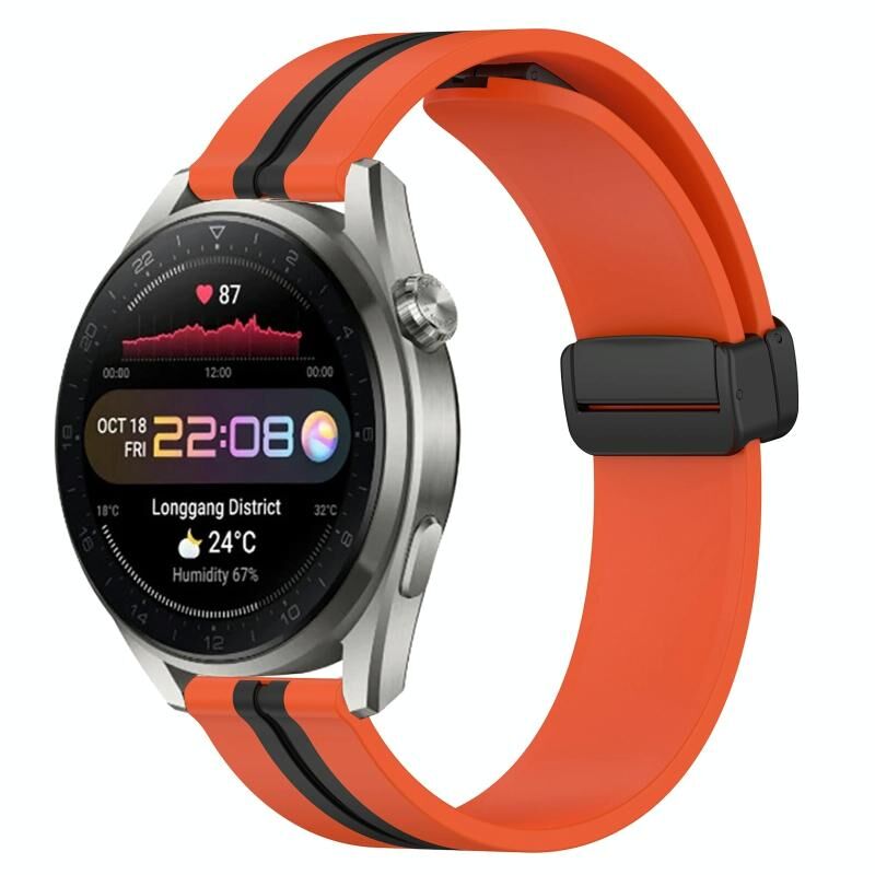 Για το Huawei Watch 3 Pro Νέο 22mm Πτυσσόμενο μαγνητικό κούμπωμα ζώνη ρολογιού σιλικόνης (πορτοκαλί+μαύρο)
