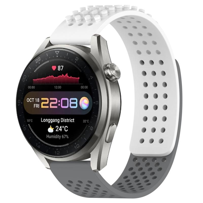For Huawei Watch 3 Pro New 22mm Holes Breathable 3D Dots Silicone Watch Band(White+Grey)