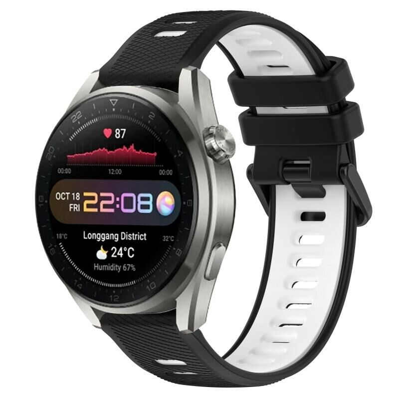 Για το Huawei Watch 3 Pro Νέα 22mm αθλητική ζώνη ρολογιού σιλικόνης δύο χρωμάτων (Μαύρο + Λευκό)