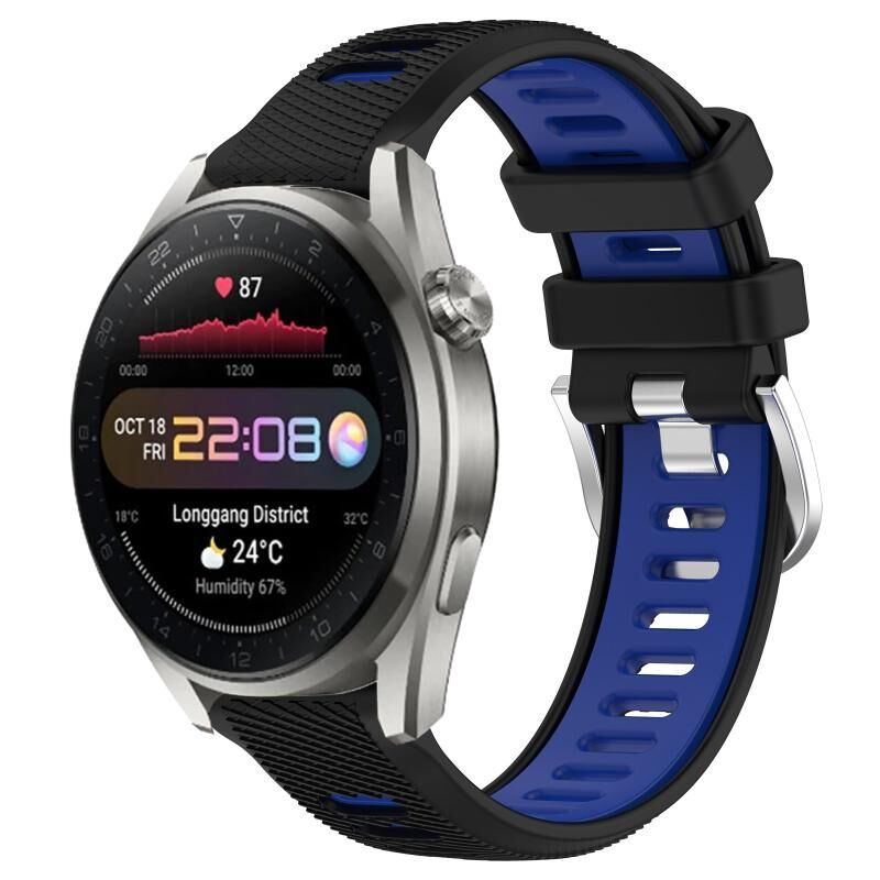 Για το Huawei Watch 3 Pro Νέα 22mm Αθλητική ζώνη ρολογιού σιλικόνης με ατσάλινη πόρπη δύο χρωμάτων (μαύρο + μπλε)