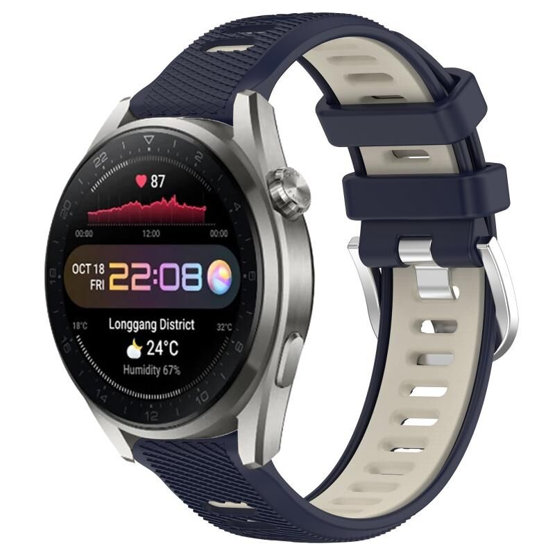 Για το Huawei Watch 3 Pro Νέα 22mm Αθλητική ζώνη ρολογιού σιλικόνης με ατσάλινη πόρπη δύο χρωμάτων (Μπλε μεσάνυχτα + Starlight)