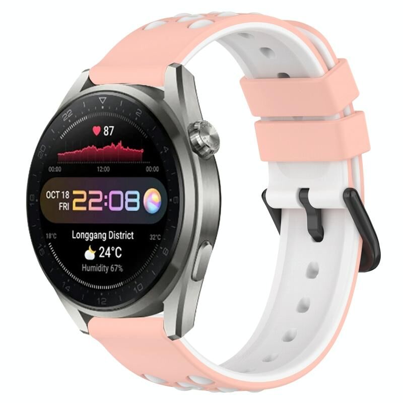 Για το Huawei Watch 3 Pro Νέο λουράκι ρολογιού σιλικόνης 22 χιλιοστών με δύο χρώματα (ροζ+λευκό)