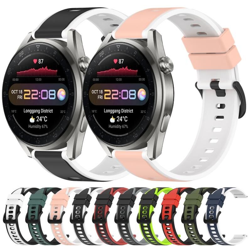 Για το Huawei Watch 3 Pro Νέο λουράκι ρολογιού σιλικόνης 22mm δύο χρωμάτων (μαύρο + κόκκινο)
