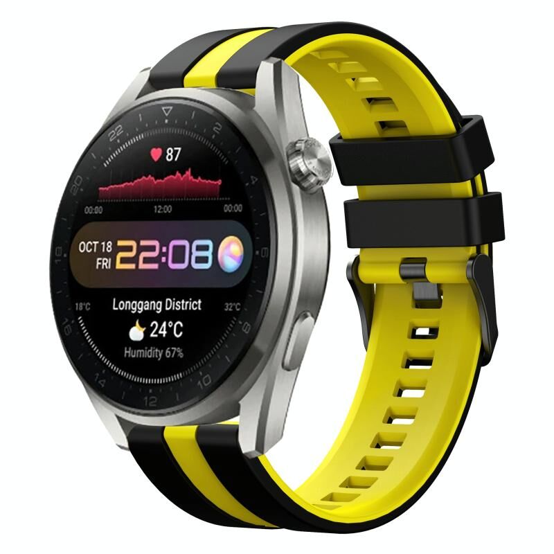 Για το Huawei Watch 3 Pro Νέο 22mm δύο χρωμάτων αθλητικό λουράκι σιλικόνης (μαύρο + κίτρινο)