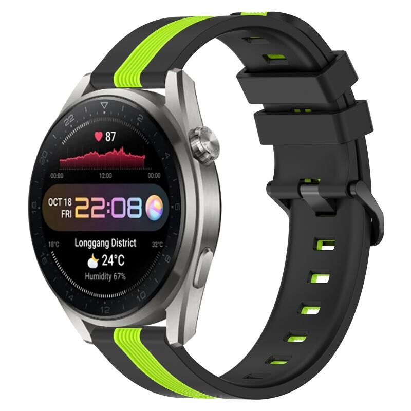 Για το Huawei Watch 3 Pro Νέο 22mm κάθετο λουράκι ρολογιού σιλικόνης δύο χρωμάτων (Μαύρο+Lime Green)