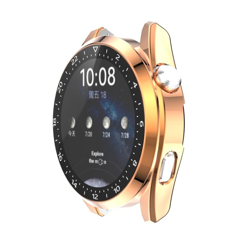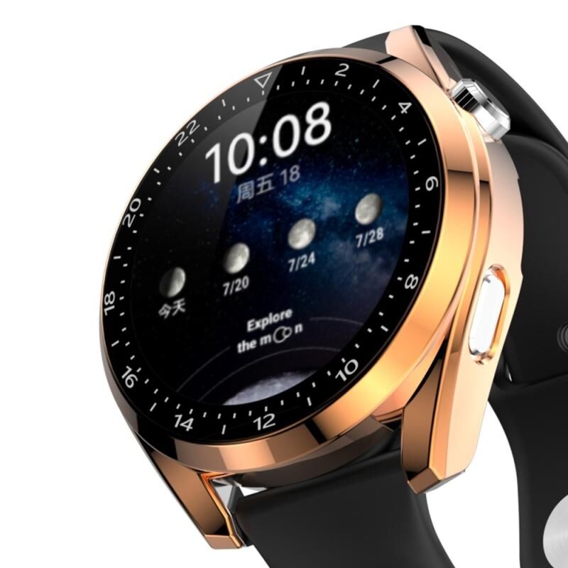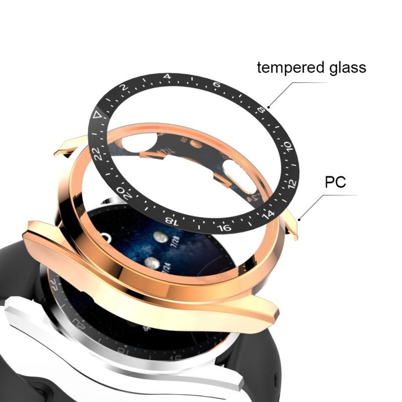 For Huawei Watch 3 Pro Scale Electroplated PC + Tempered Glass Watch Case(Rose Gold)