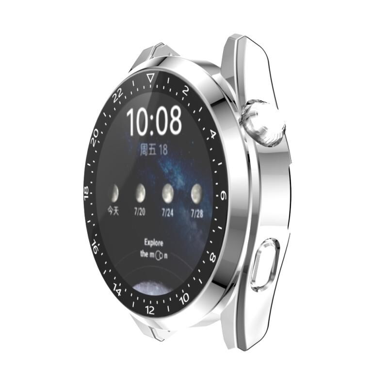 For Huawei Watch 3 Pro Scale Electroplated PC + Tempered Glass Watch Case(Silver)