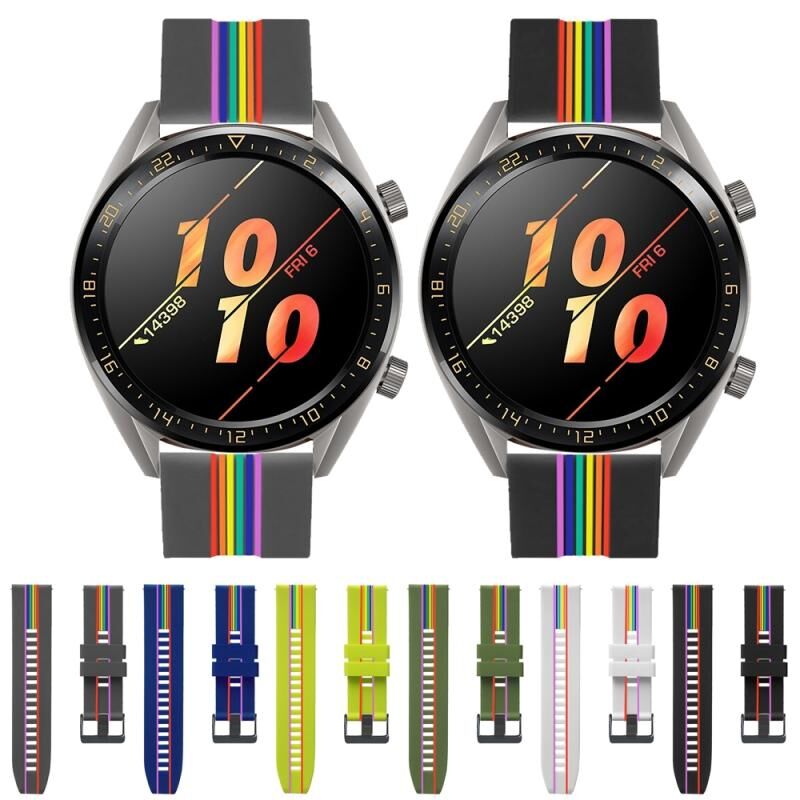 Για το Huawei Watch 3, Λουράκι Σιλικόνης Rainbow (Μαύρο)