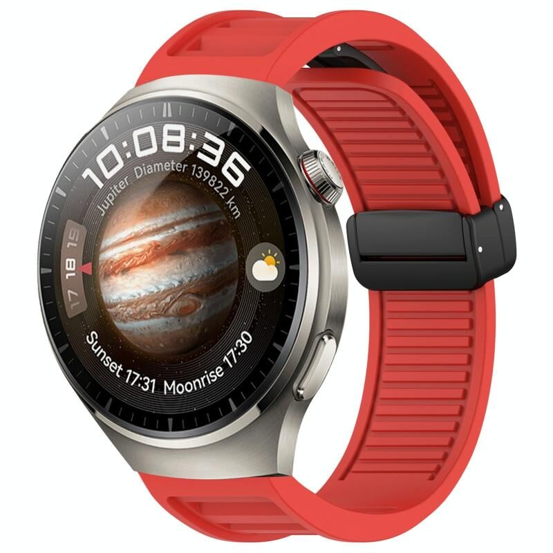 Για το Huawei Watch 4 22mm Πτυσσόμενο μαγνητικό λουράκι σιλικόνης (κόκκινο)