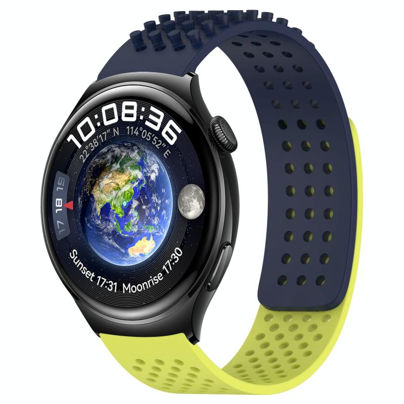 For Huawei Watch 4 22mm Holes Breathable 3D Dots Silicone Watch Band(Midnight Blue+Lime Green)