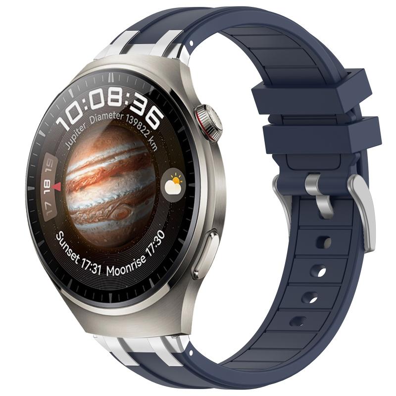 For Huawei Watch 4 22mm Quick Release Silver Buckle Royal Silicone Watch Band(Navy Blue)
