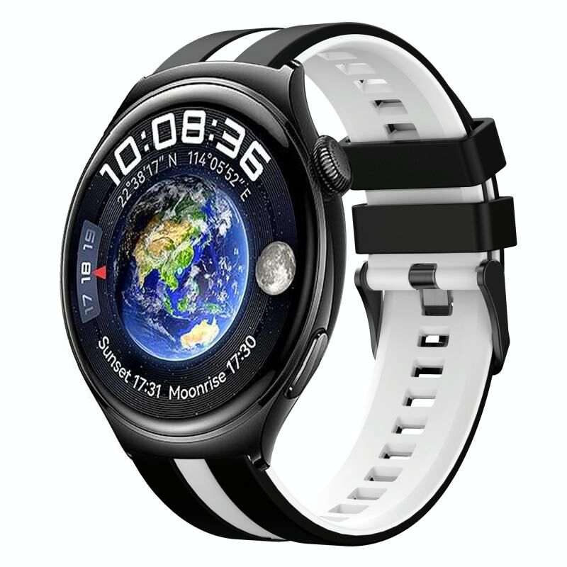 Για το Huawei Watch 4 22mm δύο χρωμάτων αθλητική ζώνη ρολογιού σιλικόνης (Μαύρο + Λευκό)