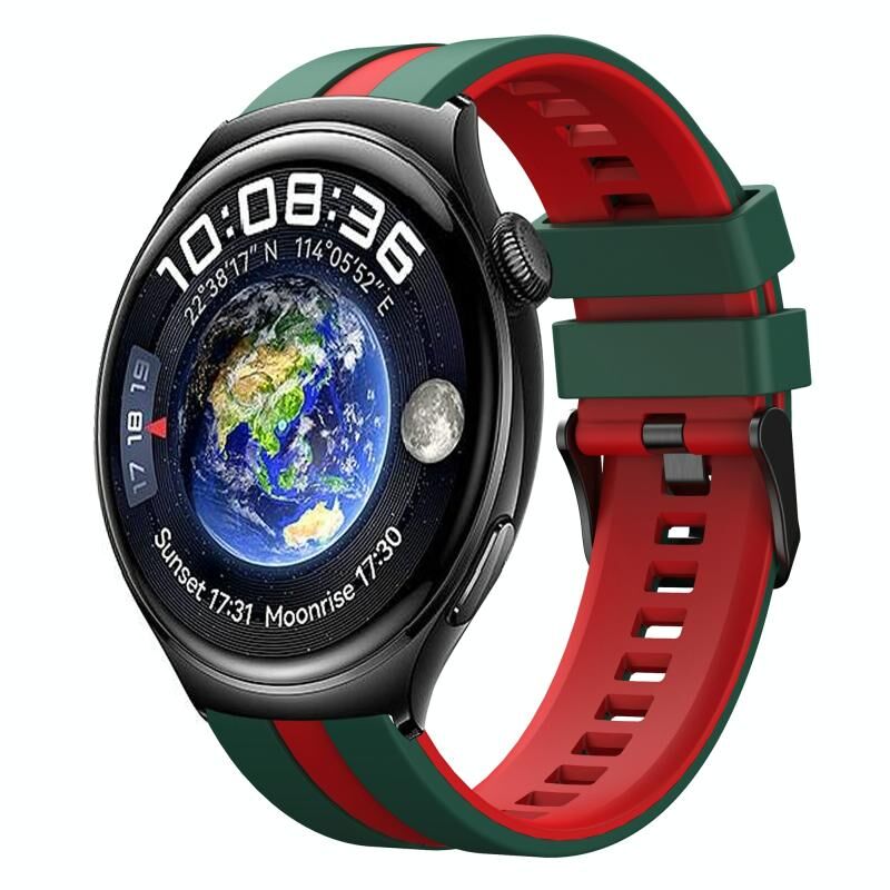 Για το Huawei Watch 4 22mm δύο χρωμάτων αθλητική ζώνη ρολογιού σιλικόνης (πράσινο + κόκκινο)