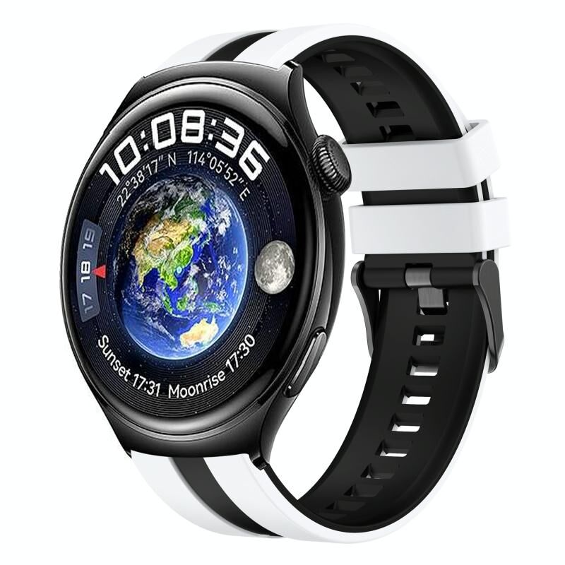 Για το Huawei Watch 4 22mm δύο χρωμάτων αθλητική ζώνη ρολογιού σιλικόνης (λευκό + μαύρο)
