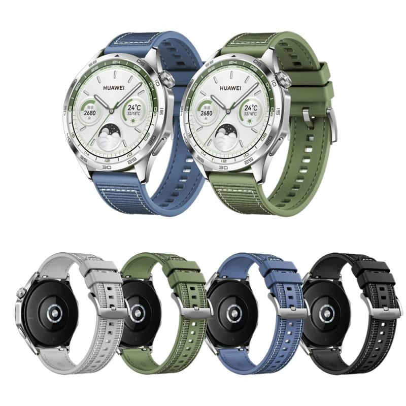 For Huawei Watch 4 Nylon Silicone Leather Watch Band(Black)