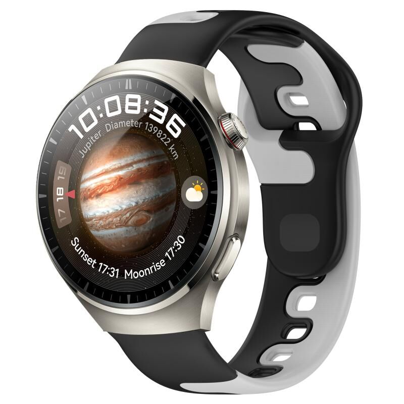 Για το Huawei Watch 4 Pro 22 χιλιοστά διπλό χρώμα σιλικόνης ρολόι μπάντα ρολογιού (μαύρο + γκρι)