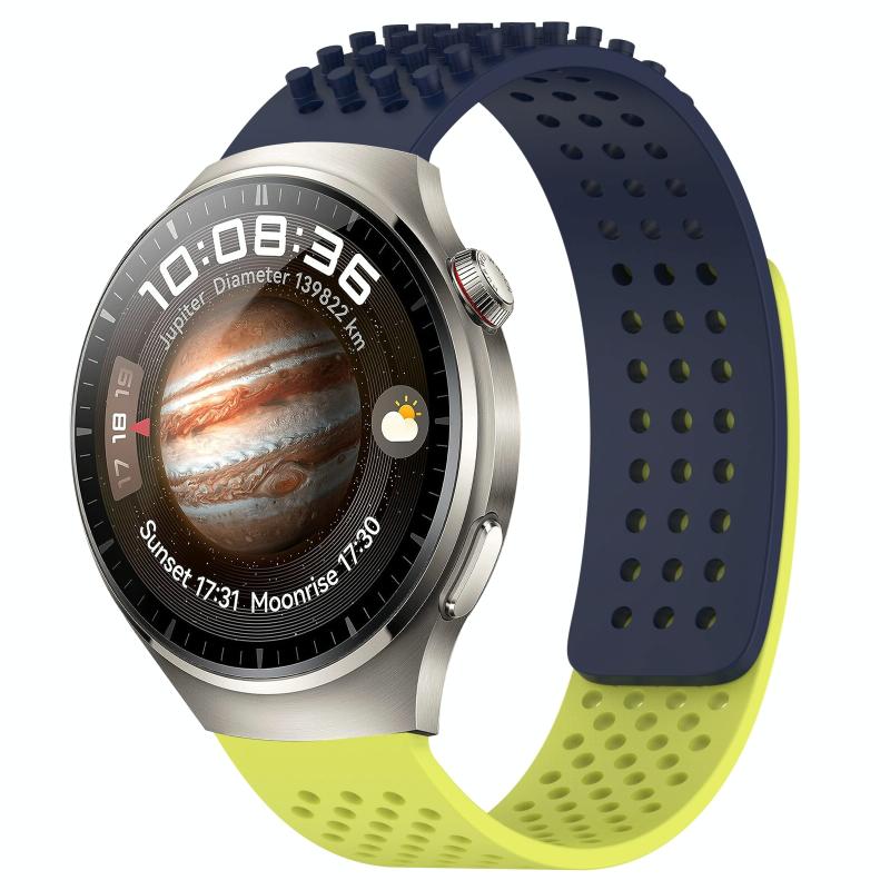 For Huawei Watch 4 Pro 22mm Holes Breathable 3D Dots Silicone Watch Band(Midnight Blue+Lime Green)