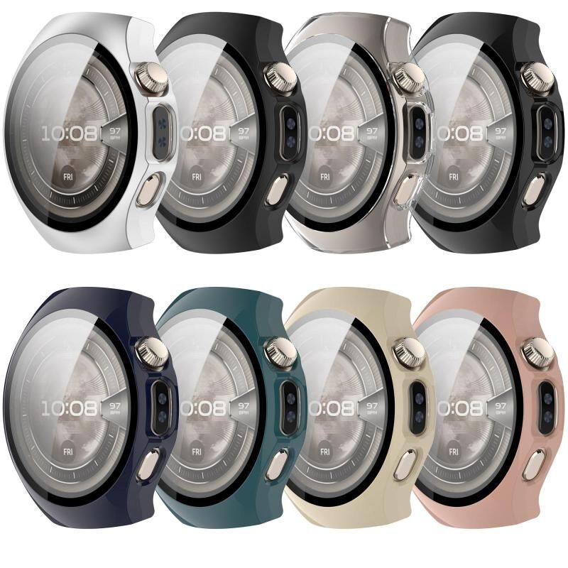 Για Huawei Watch 5 42mm Επικάλυψη Οθόνης από Tempered Glass και Ενσωματωμένη Θήκη Προστασίας PC (Μαύρο)