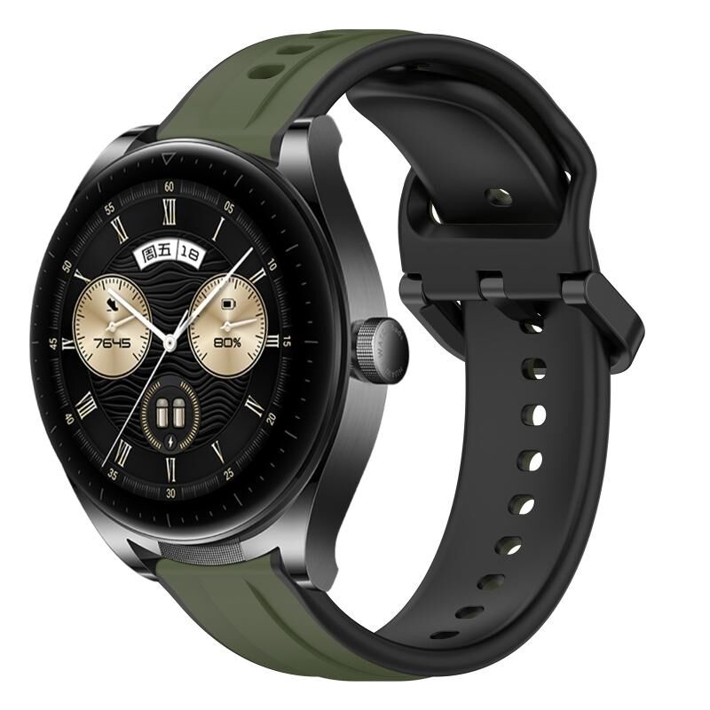 Για το Huawei Watch Buds 22mm κυρτό βρόχο δύο χρωμάτων σιλικόνης (σκούρο πράσινο + μαύρο)