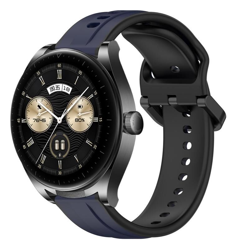 Για Huawei Watch Buds 22mm κυρτό βρόχο δύο χρωμάτων σιλικόνης ρολόι μπάντα ρολογιού (Midnight Blue + Μαύρο)