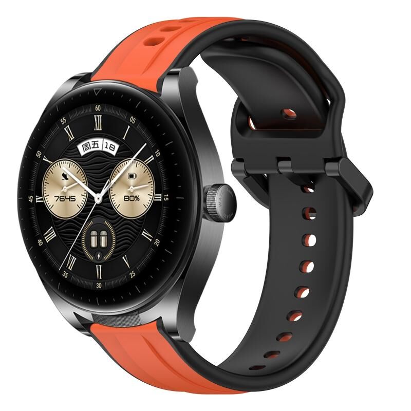 Για Huawei Watch Buds 22mm κυρτό βρόχο δύο χρωμάτων σιλικόνης ρολόι μπάντα ρολογιού (πορτοκαλί + μαύρο)