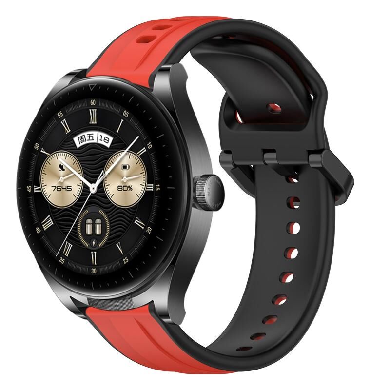 Για το Huawei Watch Buds 22mm κυρτό βρόχο σιλικόνης δύο χρωμάτων (κόκκινο + μαύρο)