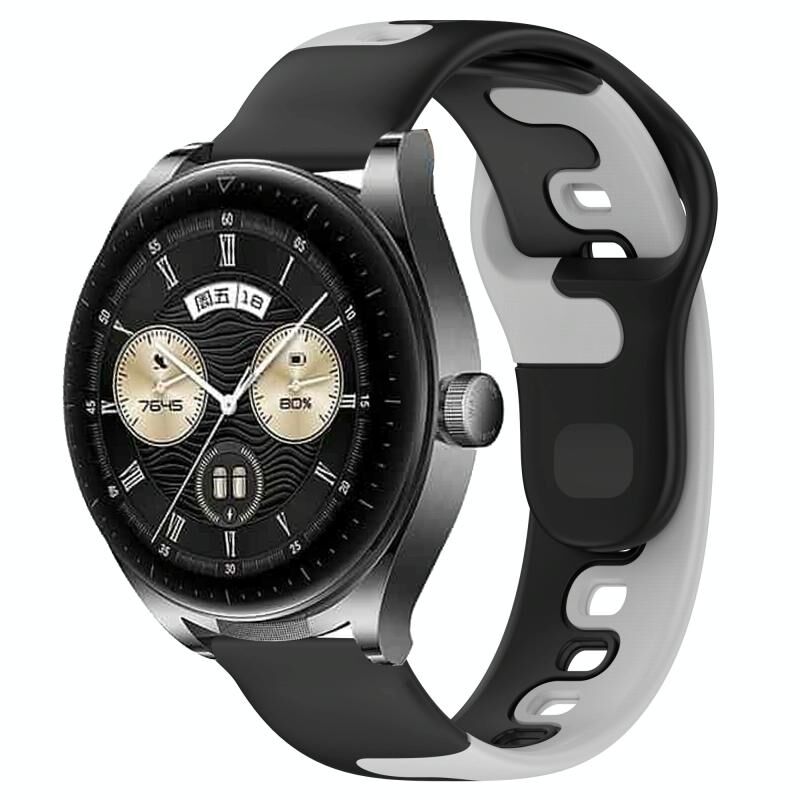 Για Huawei Watch Buds 22mm Διπλό χρώμα σιλικόνης ρολόι μπάντα ρολογιών (μαύρο + γκρι)
