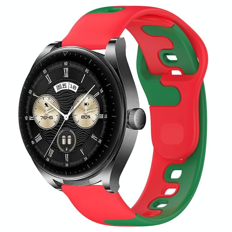 Για Huawei Watch Buds 22mm Διπλό χρώμα σιλικόνης ρολόι μπάντα ρολογιών (κόκκινο + πράσινο)