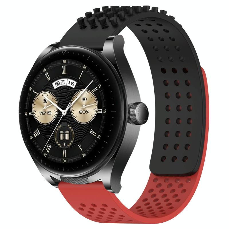 For Huawei Watch Buds 22mm Holes Breathable 3D Dots Silicone Watch Band(Black+Red)