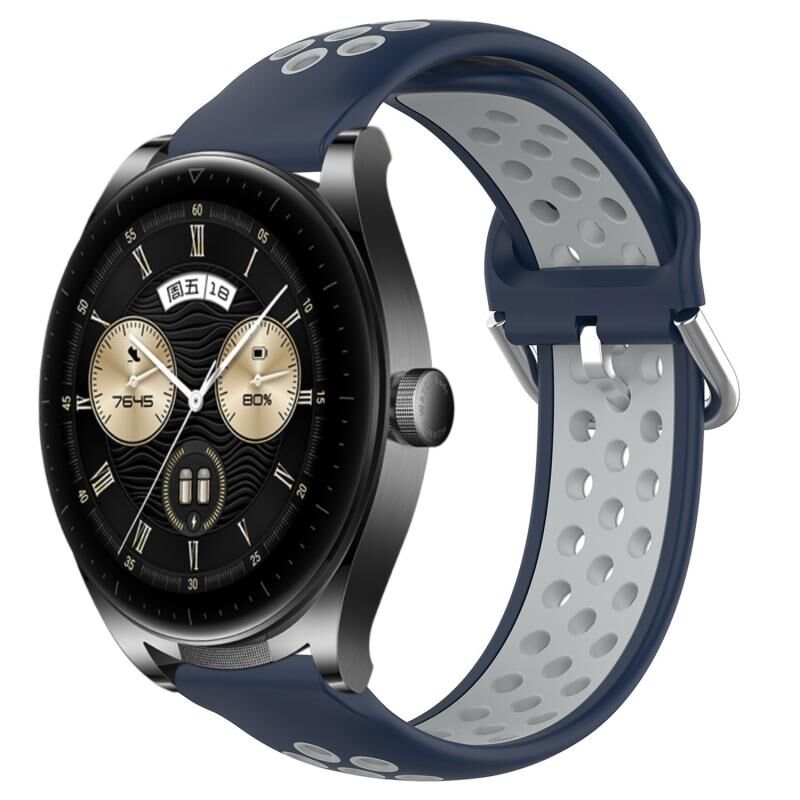 Για το Huawei Watch Buds 22mm διάτρητη αναπνεύσιμη αθλητική ζώνη ρολογιού σιλικόνης (μπλε μεσάνυχτα + γκρι)