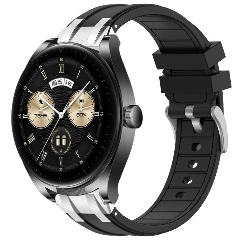 For Huawei Watch Buds 22mm Quick Release Silver Buckle Royal Silicone Watch Band(Black)