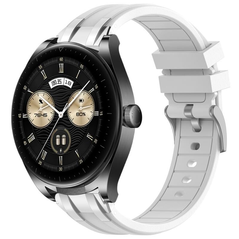 For Huawei Watch Buds 22mm Quick Release Silver Buckle Royal Silicone Watch Band(White)