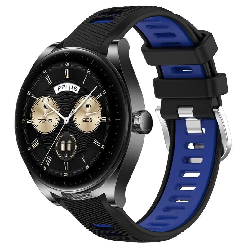 Για Huawei Watch Buds 22mm Αθλητισμός Δύο χρωμάτων χάλυβα πόρπη σιλικόνης ρολόι μπάντα ρολογιών (μαύρο + μπλε)