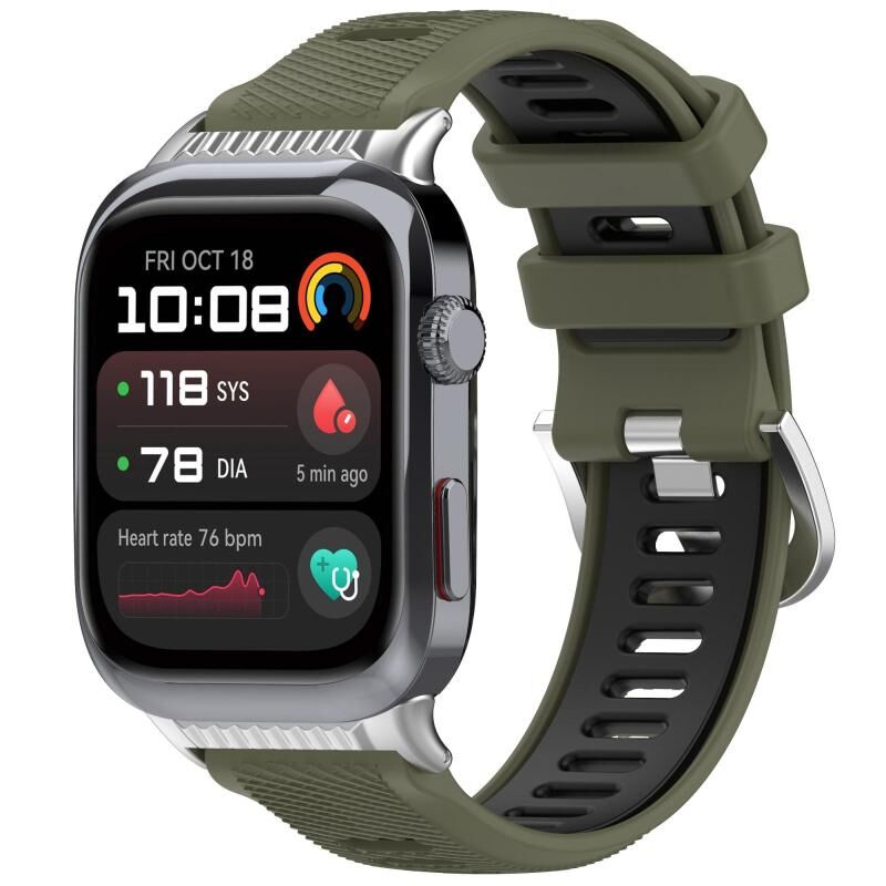 For Huawei Watch D2 Silver Metal Head Two Color Silicone Watch Band(Green+Black)