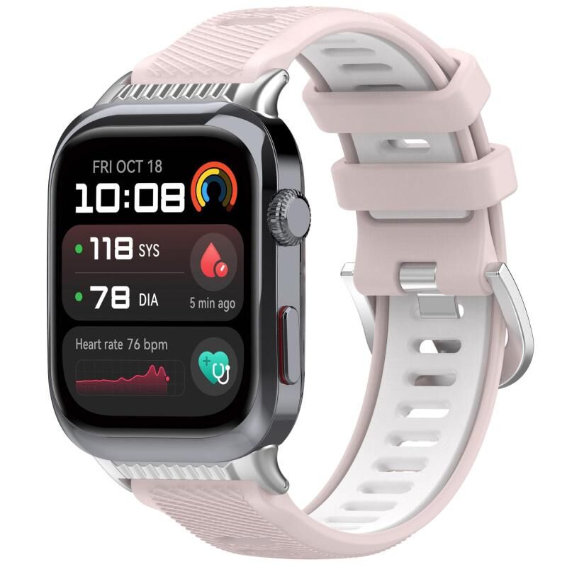 For Huawei Watch D2 Silver Metal Head Two Color Silicone Watch Band(Pink+White)