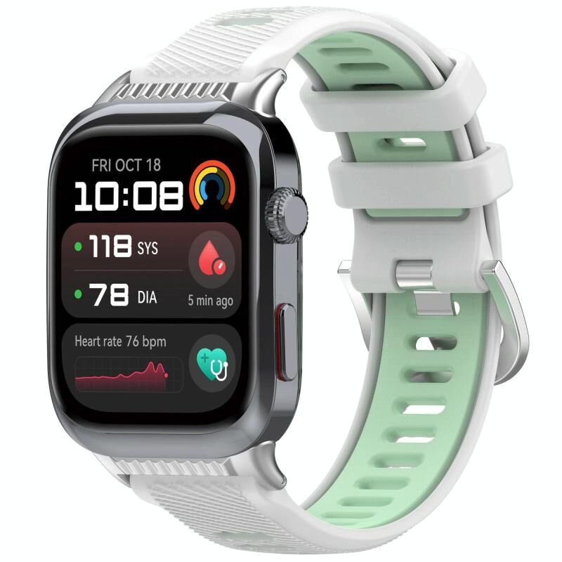 For Huawei Watch D2 Silver Metal Head Two Color Silicone Watch Band(White+Green)